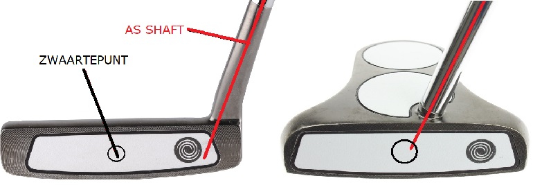 Een face balanced putter heeft minder de neiging om open en dicht te draaien. Dat komt omdat de twee punten (as van de shaft en zwaartepunt van de putter) met elkaar zijn opgelijnd. Als je een beweging hebt waarbij de putter recht naar achter en recht door de bal gaat (slechts 15% van alle golfers putt op deze manier) heb je het meest aan een ‘face balanced’ putter waarbij dat het clubblad naar boven wijst als je deze balanceert.